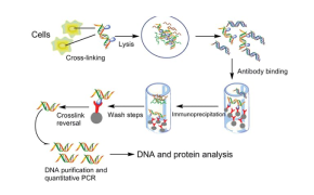 クロマチン免疫沈降法(ChIP)は、エピジェネティック研究において標的のタンパク質がゲノム上のどのDNA領域に結合するかを特定するために行われます。